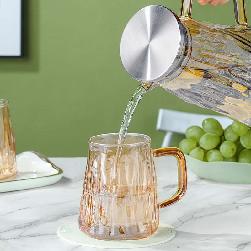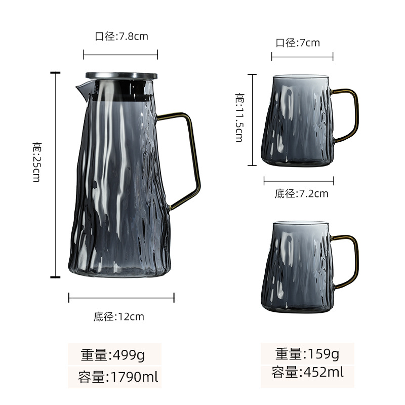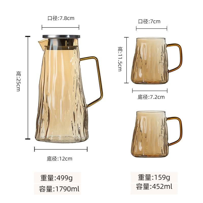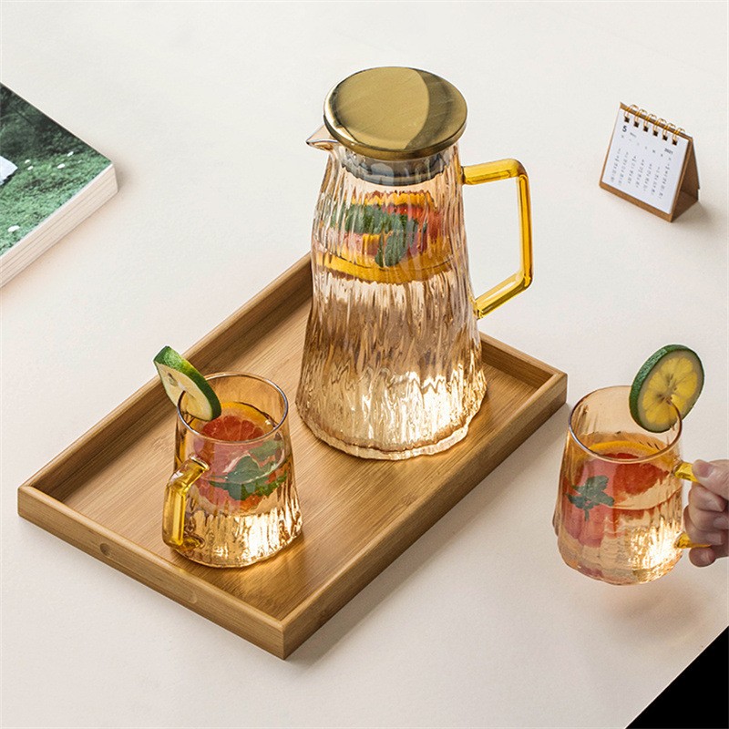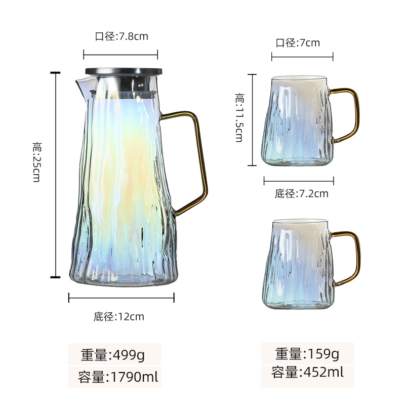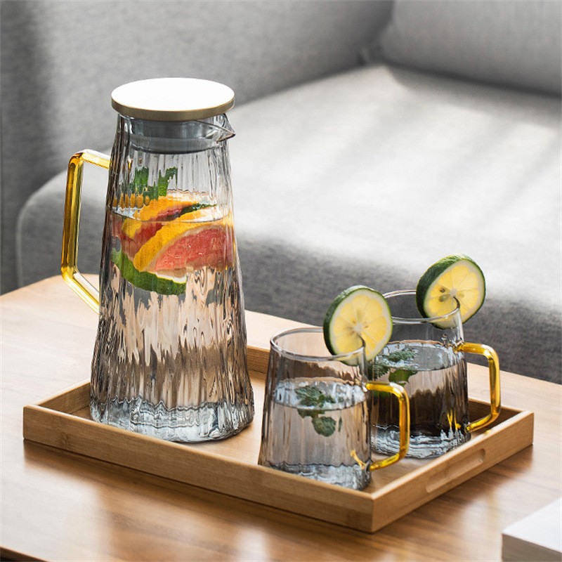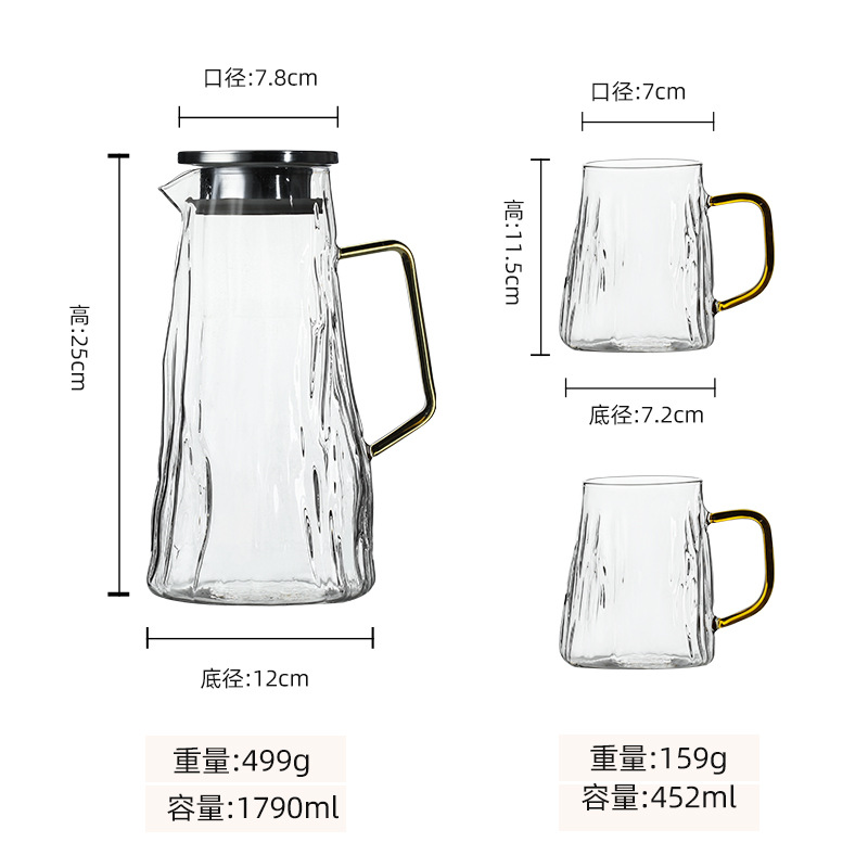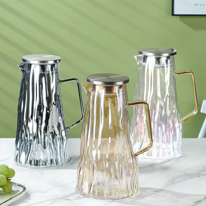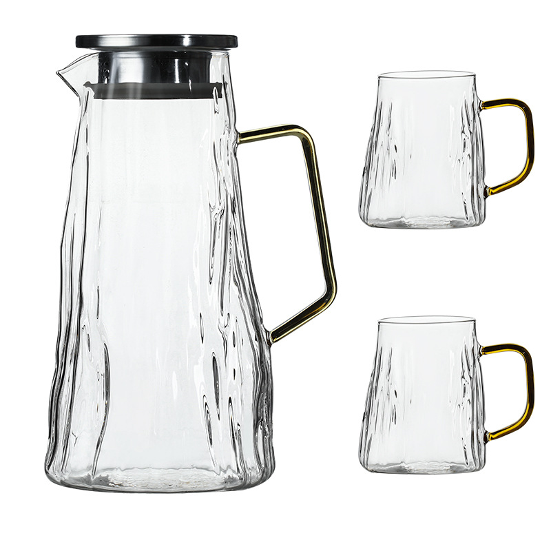 ग्लेशियर पॅटर्न ग्लास थंड पाण्याची बाटली पिण्याचे पाणी, ज्यूस, शीतपेये इत्यादीसाठी खूप चांगली आहे. ती पाहुण्यांचे मनोरंजन करण्यासाठी देखील योग्य आहे. क्रिस्टल क्लिअर हाय बोरोसिलिकेट ग्लास, ट्री पॅटर्न टेक्सचरसह एकत्रित, साधा आणि फॅशनेबल, अष्टपैलू आणि सुंदर आहे, तो वापरला गेला असेल किंवा तुमच्या घराच्या कोपऱ्यात ठेवला असेल, तो पाहण्यासारखा आहे. प्रक्रिया आणि सानुकूलन स्वीकारा, वाटाघाटीसाठी स्वागत आहे!
