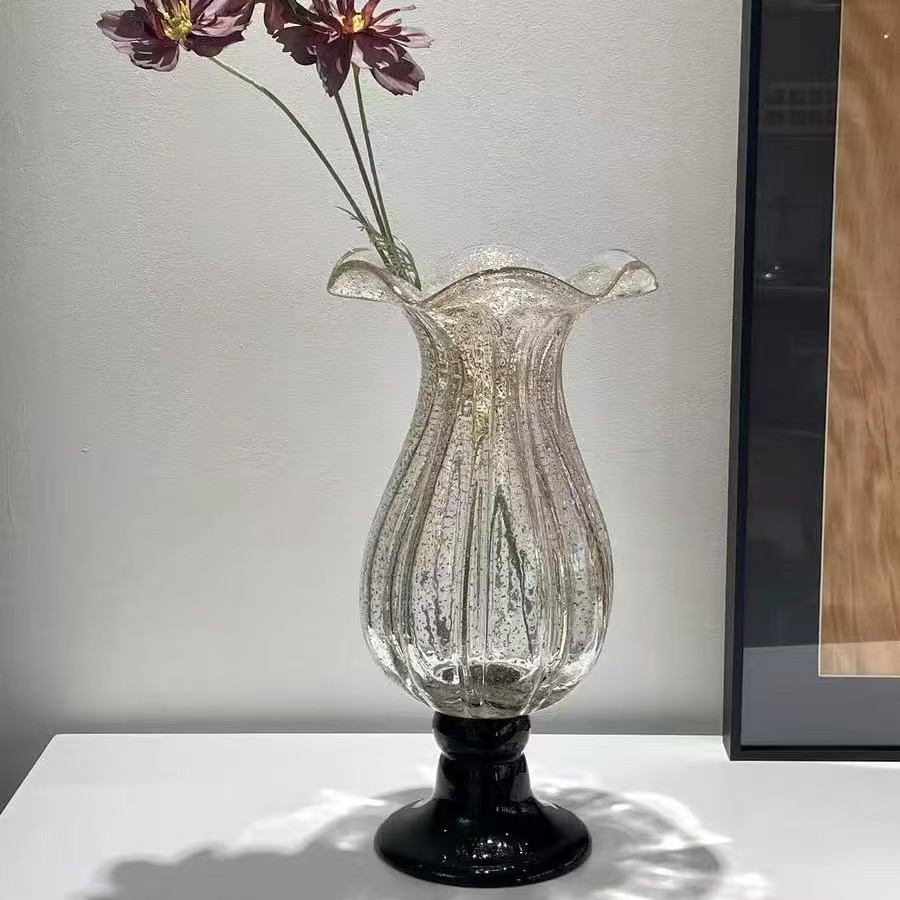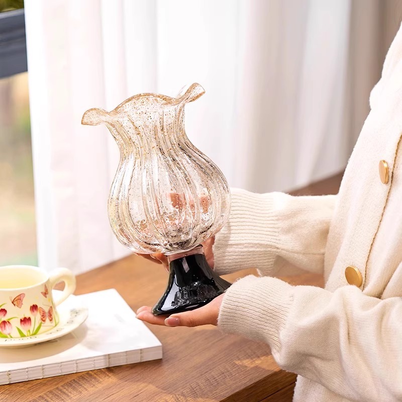 उत्पादनाचे नाव: लक्झरी गोल्ड-स्प्रिंकल्ड विंटेज टॉल ग्लास फुलदाणी
