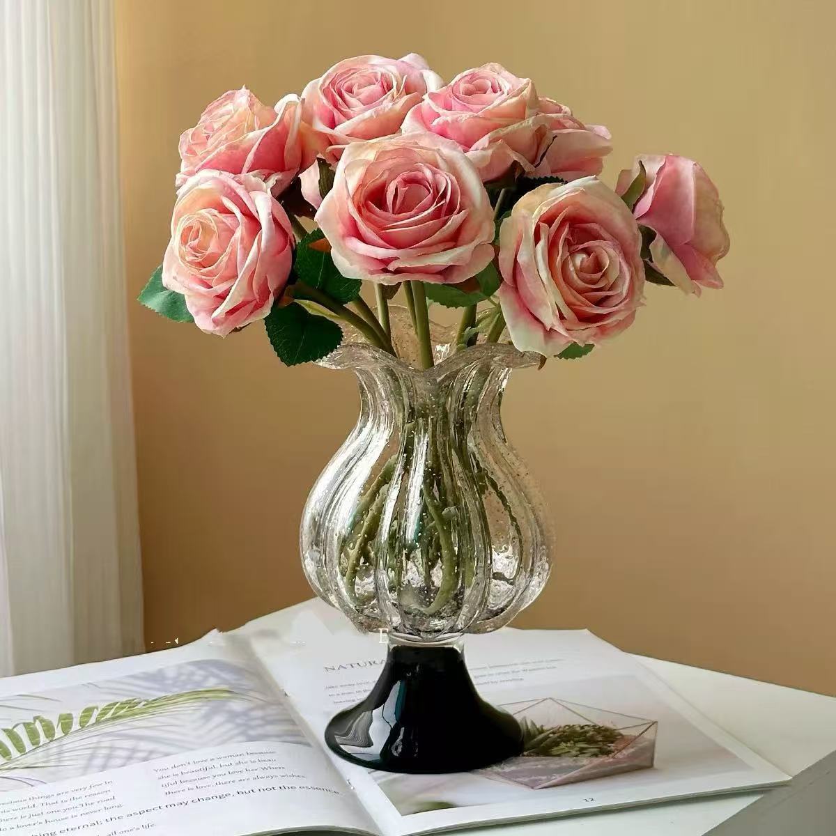 2. हे फुलदाणी निश्चितपणे निर्मळ आणि मोहक म्हणून वर्णन केले जाऊ शकते; यात अंगभूत सौंदर्य फिल्टर आहे आणि त्याचे स्वरूप निर्विवादपणे आश्चर्यकारक आहे. ते कुठेही ठेवले तरी ते एक सुंदर दृश्य बनते.