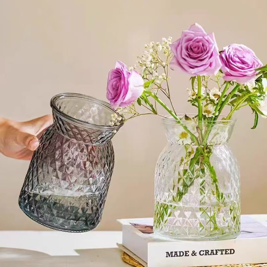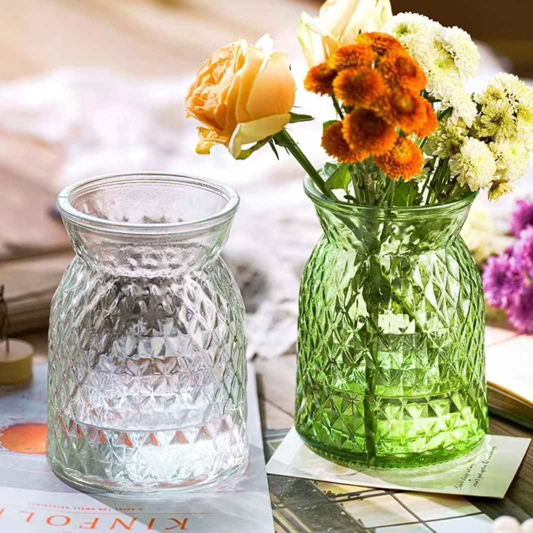 उत्पादनाचे नाव: लक्झरी पारदर्शक रेट्रो एम्बॉस्ड ग्लास फुलदाणी