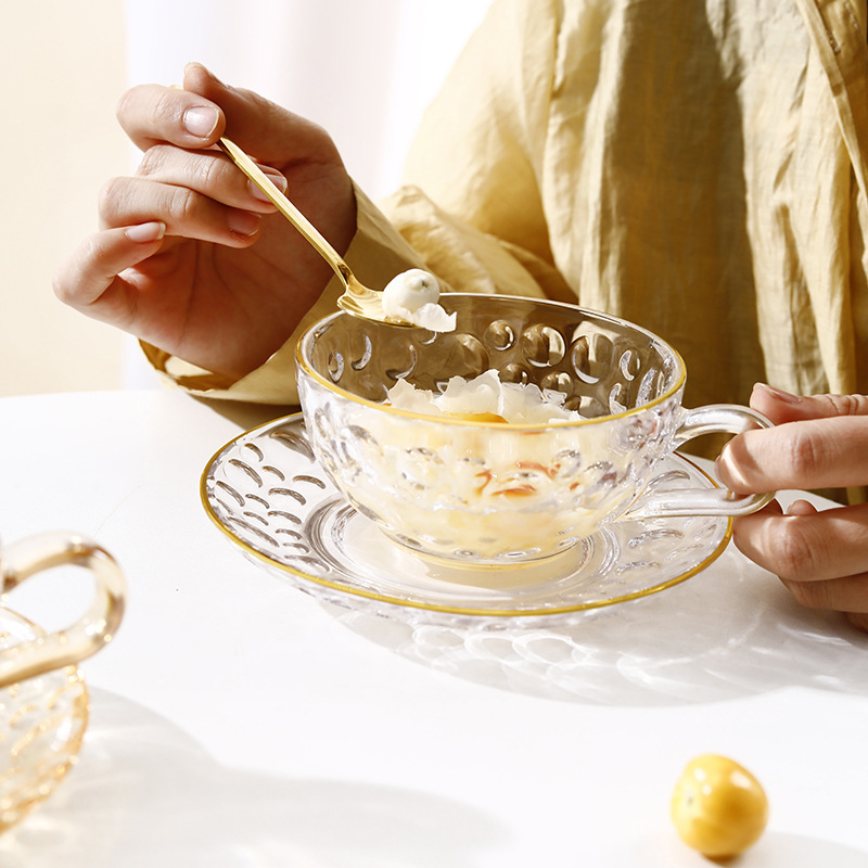 3. पारदर्शक रंगाच्या साध्या परंतु मोहक, अतिशय डिझाइन सेन्ससह पारदर्शक कप शरीर, सूर्याखालील प्रकाश वाहणारा प्रकाश